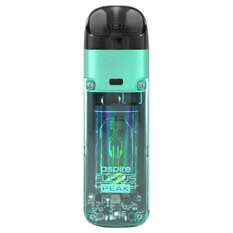 Das Flexus Peak besitzt eine kompakte Bauform sowie abgerundete Kanten, um ein angenehmes Handling zu gewähren, wobei der leicht transparente Look einen Blick auf die eingesetzten Bauteile bietet. Im Inneren arbeitet ein ausdauernder 1000mAh Akku, welcher in Kombination mit dem verbauten Chip und der Zugautomatik eine simple als auch sichere Nutzung dank integrierter Schutzmechanismen ermöglicht. Zusätzlich befindet sich frontseitig ein LED-Streifen, der den dreistufig konfigurierbaren Betriebsstatus samt Akkustand anzeigt, um bei Bedarf schnell über den USB-C-Anschluss zu laden.