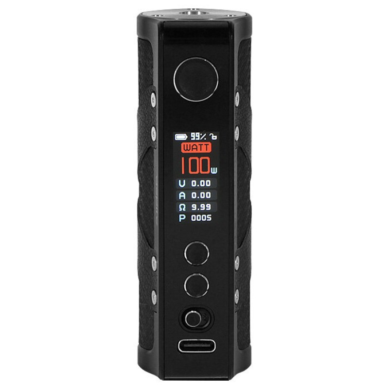 Im Inneren des Gerätes arbeitet ein 18650er Akku, der unter Regie eines modernen ASP-Chipsatzes mit zahlreichen Schutzschaltungen an Bord maximale 100 Watt Ausgangsleistung generiert. Gleichwohl lassen sich via ergonomisch geschickt platzierter Bedientasten die fünf zur Verfügung stehenden Dampfmodi auswählen sowie individuell einstellen. Ebenso praktisch erweist sich der Lock-Button mit komfortablem Schieberegler, welcher unbeabsichtigtes Einschalten während des Transports effektiv verhindert. Dabei liefert das übersichtlich gestaltete 0,96 Zoll Farbdisplay alle relevanten Informationen zu den aktuellen Konfigurationen in gestochen scharfer Qualität..