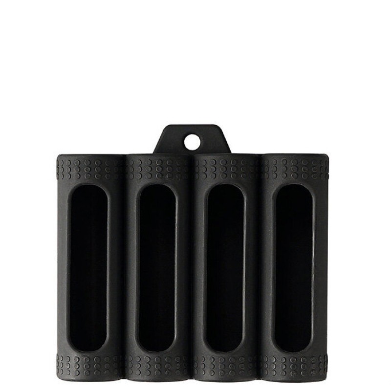 Das Silikoncase sorgt für den entsprechenden Schutz von bis zu vier 18650er Akkus. Die oben befindliche und praktische Aussparung dient dazu, das Case auch aufhängen zu können.