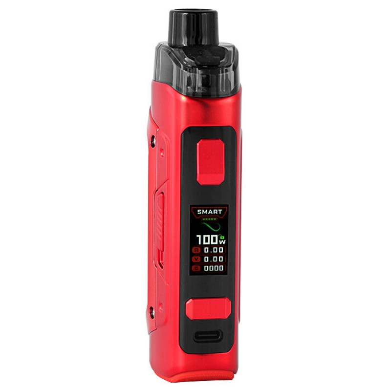 Angetrieben von einem 18650er Akku werden in Zusammenarbeit mit dem AS Chipsatz 3.0 bis zu 100 Watt Leistung abgerufen, die mittels Kippschalter eine simple Steuerung der Schaltzentrale bei Höchstgeschwindigkeit realisiert. Parallel informiert das brillante 0,96 Zoll Curved Farbdisplay jederzeit über die wählbaren Konfigurationen, sodass Sie mit einem Blick auf die Parameter stets den korrekten Kurs beibehalten. Zudem hat GeekVape dem Mod einen Lock-Button spendiert, welcher unbeabsichtigtes Einschalten während des Transports effektiv verhindert.