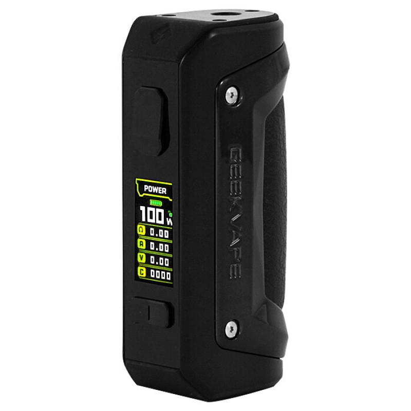 Im Inneren arbeitet ein 18650er Akku, der in Kombination mit dem AS-Chipsatz eine Leistung von 100 Watt erzeugt, während eine Vielzahl an Modi wählbar sind. Mittels zweier Tasten nehmen Sie sämtliche Änderungen vor, die das 1,08 Zoll große Farbdisplay darstellt. Ebenso praktisch erweist sich das seitlich angebrachte A-Lock-System mit komfortablem Schieberegler, der das komplette Gerät sperrt, um einen sicheren Transport ohne Auslösen des Feuerbuttons zu gewähren.