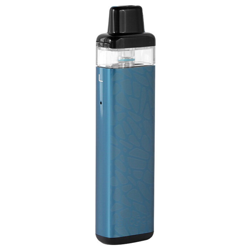 Das schlanke Podsystem besteht aus einem robusten Metallgehäuse, welches ein graziles Mosaik-Muster besitzt und dank seiner abgerundeten Bauweise eine ergonomische Handhabung ermöglicht. Im Inneren verbaut Joyetech einen ausdauernden 960mAh Akku, der eine Leistung bis zu 17 Watt generiert. Zusätzlich zeigt eine zweifarbige LED an, wenn sich die Energie dem Ende neigt, sodass per USB-C-Anschluss wieder aufgeladen werden kann.