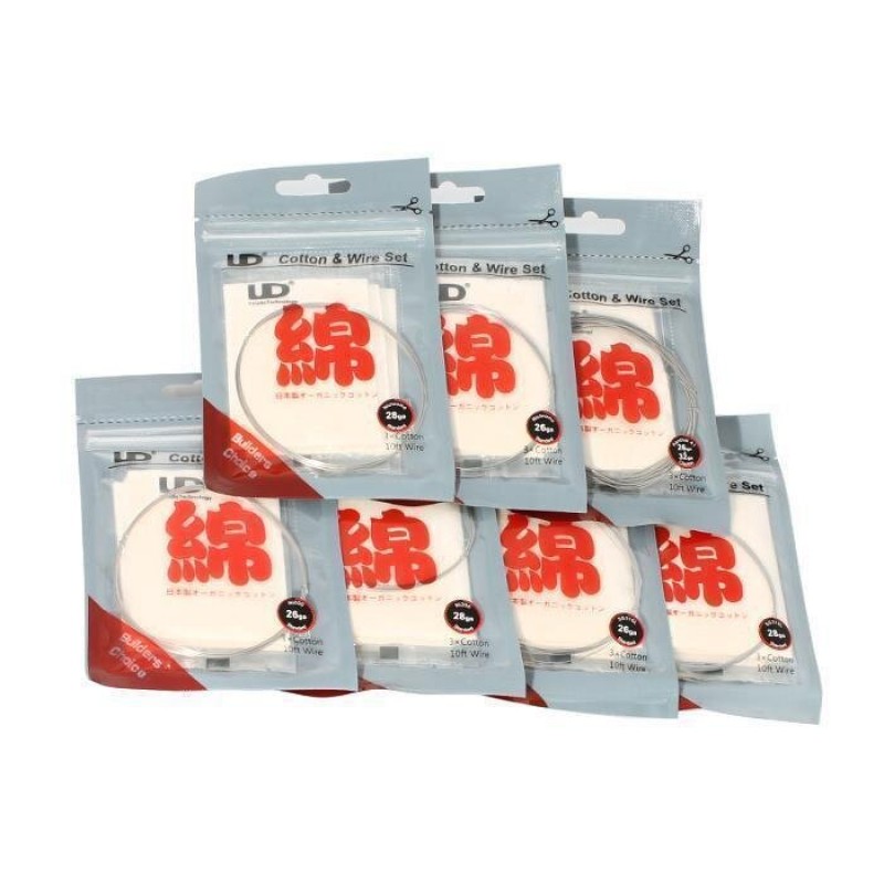 Die UD Cotton & Wire Sets bieten besten Wickeldraht und 3 Pads aus organischer Biobaumwolle im praktischen Komplettset. Egal ob Kanthal-Clapton, Nichrome, Edelstahl oder Nickel, hier ist für jeden der passende Draht dabei.