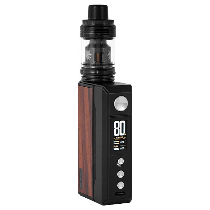 Als Material wählt VooPoo neben beständiger Zinklegierung für das Case softe Lederelemente im Griffbereich, wobei die Logoprägung dem Drag 4 eine edle Optik verleiht. Unter den magnetischen Seitenpanelen in Holz- oder Resinoptik hält das Device gebündelte Kraftreserven für den Einsatz bereit, bei dem zwei 18650er Akkus bis zu 177 Watt erzeugen. Überdies bringt der moderne GENE 2.0 Chipsatz neben einer rasanten Feuerrate eine stabile Performance mit, während zahlreiche Schutzfunktionen für Sicherheit bei der Anwendung sorgen.